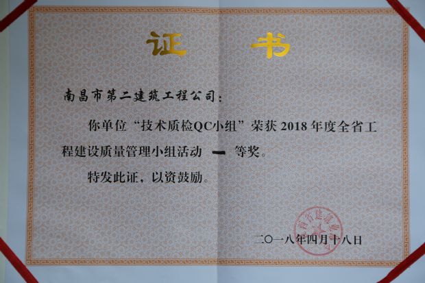 昨日,在全省QC成果發(fā)布會上,公司技術質(zhì)檢QC小組榮獲2018年度全省工程建設質(zhì)量管理小組活動一等獎。