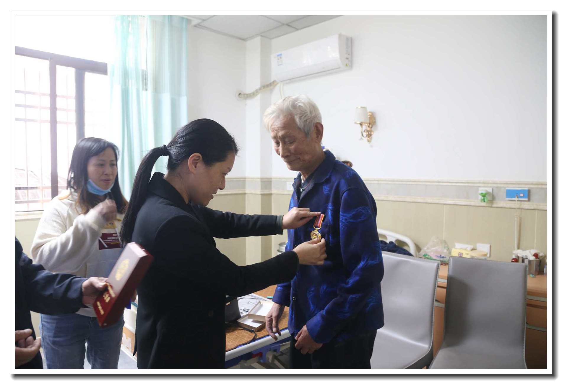 為紀(jì)念抗美援朝70周年,10月28日,公司工會(huì)主席付蓉同志率公司有關(guān)部門人員專程至中鐵建業(yè)養(yǎng)老院,看望原公司副經(jīng)理、抗美援朝老兵劉文龍同志,送上中共中央、國(guó)務(wù)院、中央軍委頒發(fā)的“中國(guó)人民志愿軍抗美援朝出國(guó)作戰(zhàn)70周年紀(jì)念章”和企業(yè)慰問(wèn)品。年屆87歲的劉文龍同志精神矍鑠,對(duì)國(guó)家和企業(yè)的關(guān)懷表示感謝,并向大家講述了當(dāng)年抗美援朝、保家衛(wèi)國(guó)的激情歲月,走訪在依依不舍中告別。